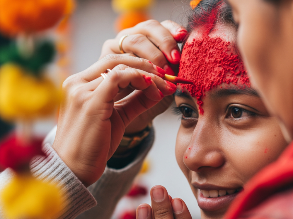 特に「ティカ」と呼ばれる赤い粉とお米の儀式では、年長者が若い世代に祝福を与えるので、家族の絆がグッと深まる瞬間です。