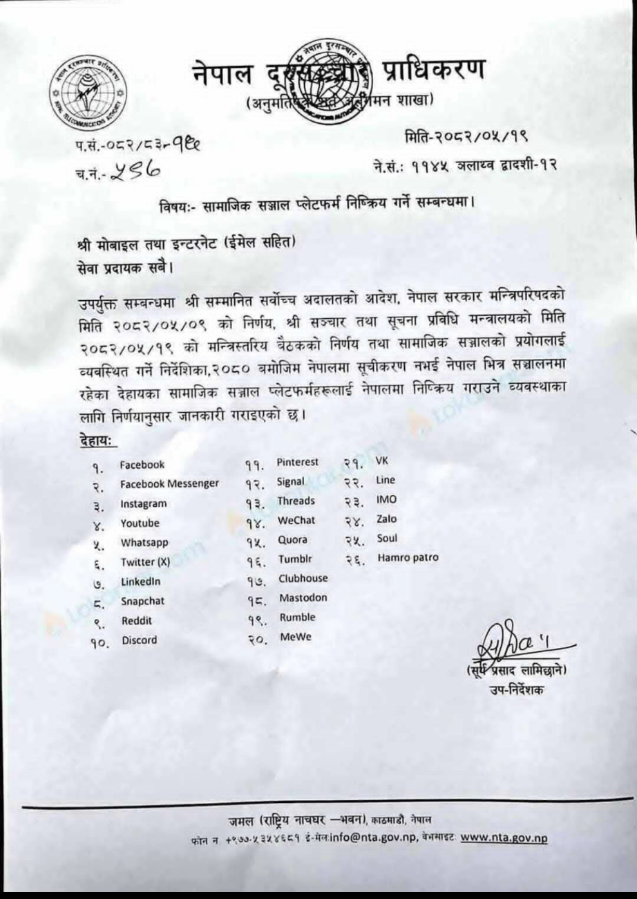 政府側の理由は「これらのSNSは、ネパールで登録手続きがされていない」「偽情報の拡散を防ぐため」とのこと。